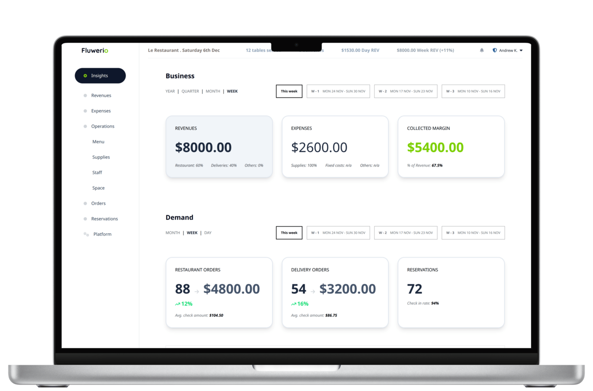 Fluwerio is primarily designed to help restaurants like yours to sustain growth and profitability with MENU ENGINEERING and SUPPLIES OPTIMIZATION by leveraging your operational data.