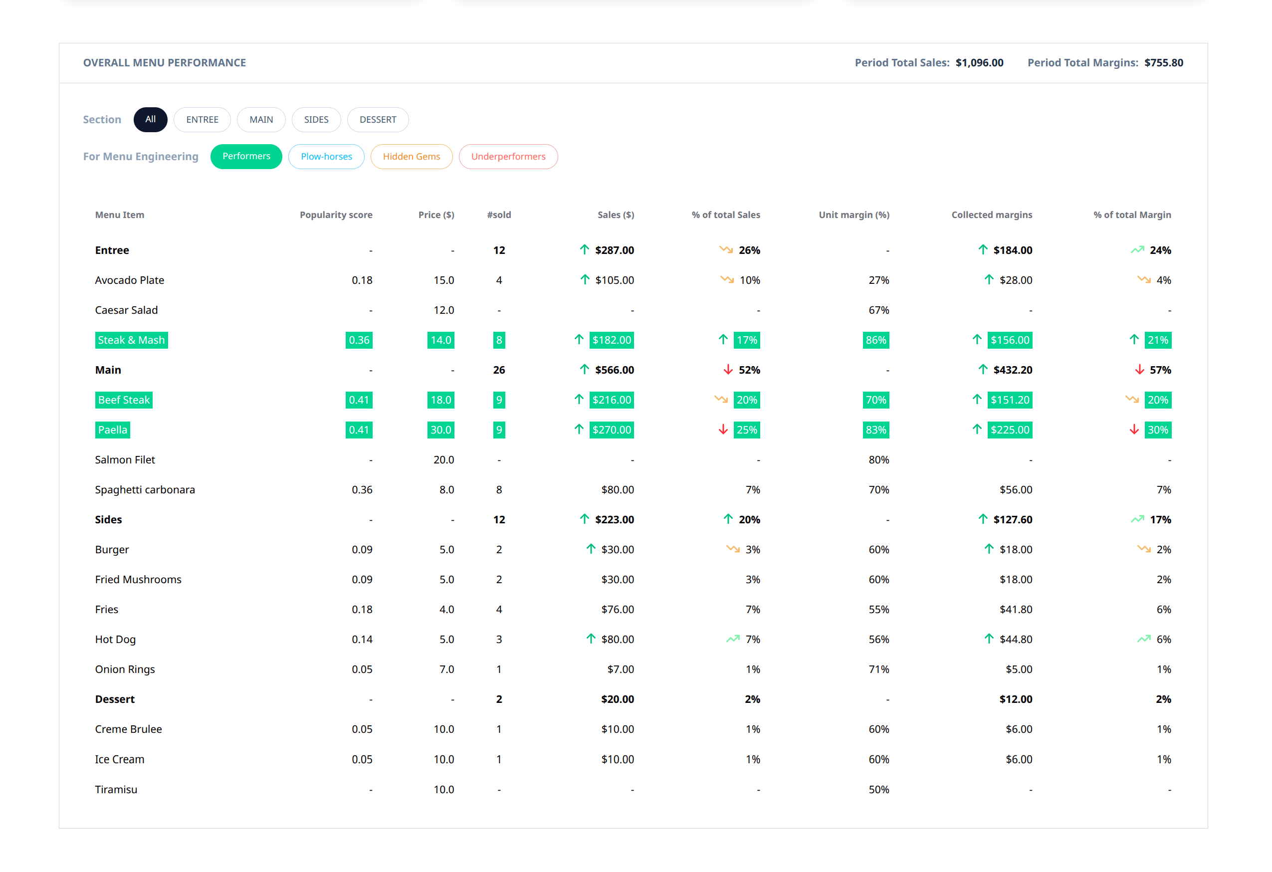 | MENU ENGINEERING | Base plans limited to basic sales stats and KPIs | 100% advanced insights: sales, margins, real-time menu performance | |