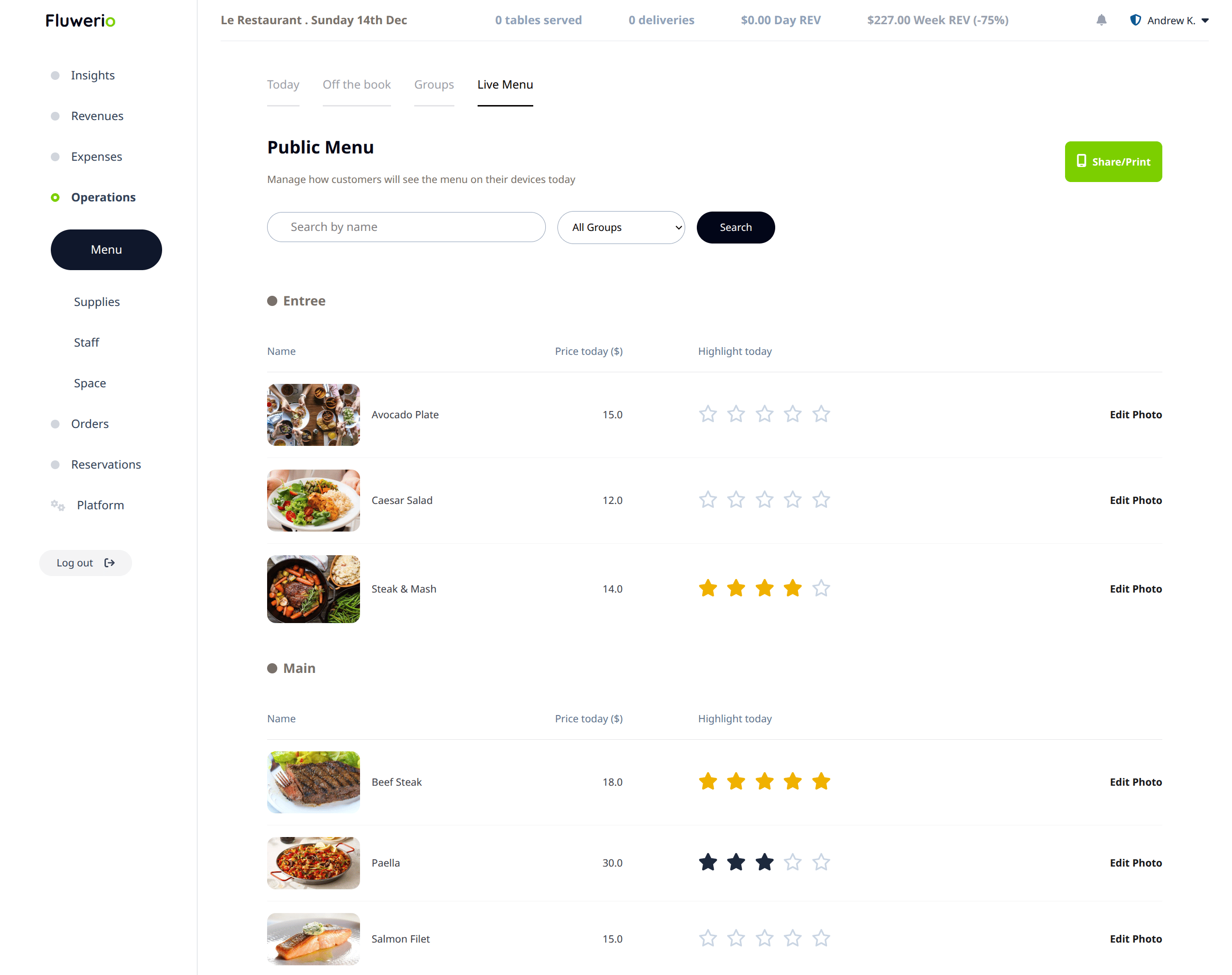 Adopting Fluwerio will ultimately give you THE EDGE in your Menu Engineering , Cash Flow and Profitability decisions.